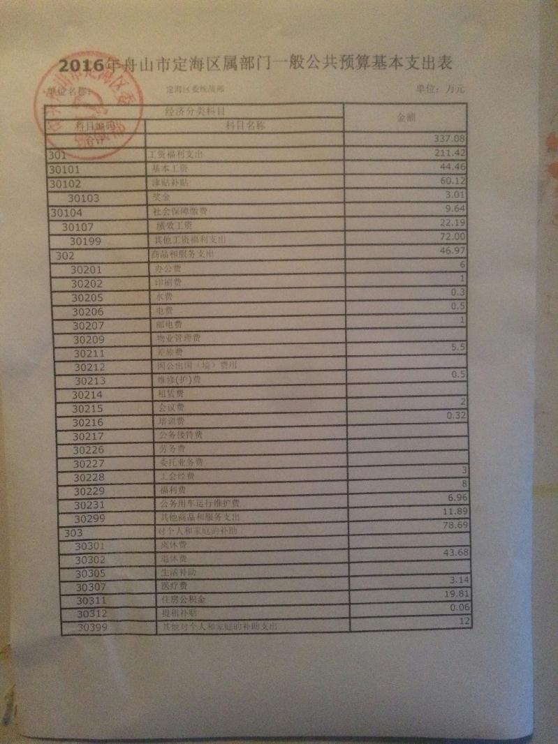 中共舟山市定海区委统战部2016年部门预算公