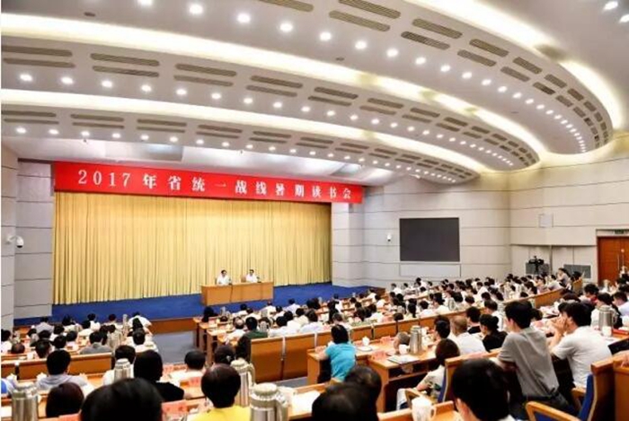 2017年省统一战线暑期读书会于7月17日在杭州开幕。18日上午,省委书记、省人大常委会主任车俊出席全省统一战线暑期读书会并讲话。他强调,全省各级统战部门和统战成员要深入学习贯彻习近平总书记就统战工作提出的一系列新思想新观点新要求,切实把思想和行动统一到省党代会精神上来,不忘合作初心、继续携手前进,为实现“两个高水平”奋斗目标凝聚起最广泛力量,以良好氛围喜迎中共十九大胜利召开。